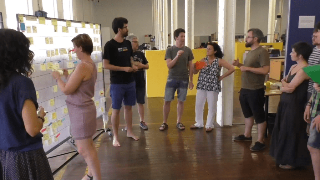 Yes, fortunately, I have a very faithful guide which helps me navigate the way: my experience of being embedded in the Decidim Team in July 2018. That experience brought the Decidim ecosystem and collective intelligences to life for me in a very grounded way. Particularly in terms which may be thought of as intangible, but actually can be the most vivid and reliable parts of an experience: movement, sensory, homeliness, self-making, self-knowing, shapeshifting. It became clear that getting to know Decidim was more about getting in touch with and interacting with Decidim (‘trying it out’, ‘getting into it’) than any attempt to pin it down to a unitary static formalised thing. In other words, when I was welcomed into and embedded in the Decidim Team, I felt my understanding of Decidim deepened as I jumped into and got into their rhythm, and when I got home after fieldwork, I literally felt like I’d just jumped off a very fast moving train with its wheels going round and round through its non-stop daily, weekly, monthly working breathing cycle. In fact, the hum of the Decidim office was still ringing in my ears for a long time after returning home. And I went on to capture that hum in the experimental video The Sound of the Hive, taking it further into a more complete picture of the Decidim Team and MetaDecidim community in the more documentary style video La Colmena [the Hive].