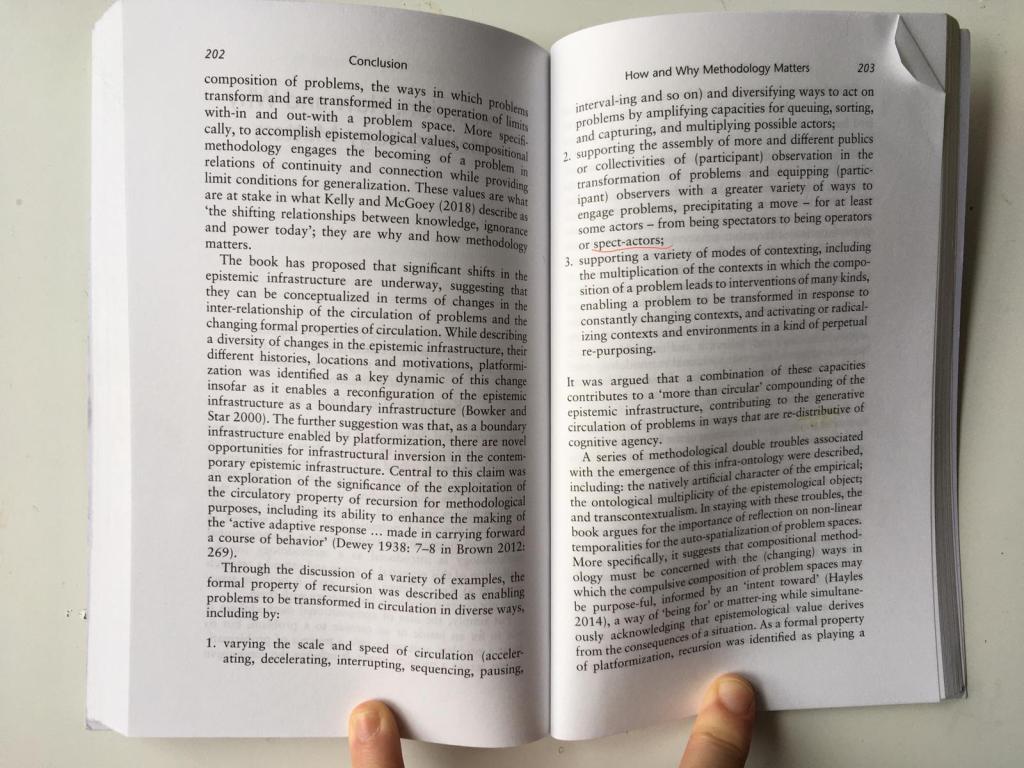 Lury even refers to Augusto Boal’s spectactor which has been a figure in my research for some time (1). We can assess if/how the spectactor figure articulates a certain configuration of the relationship between “the field” and “the literature”, where the relationship is alive, moving, transformative. Noting that this relationship can also be articulated in classic Sociological terms of knowledge-power-action dynamics.